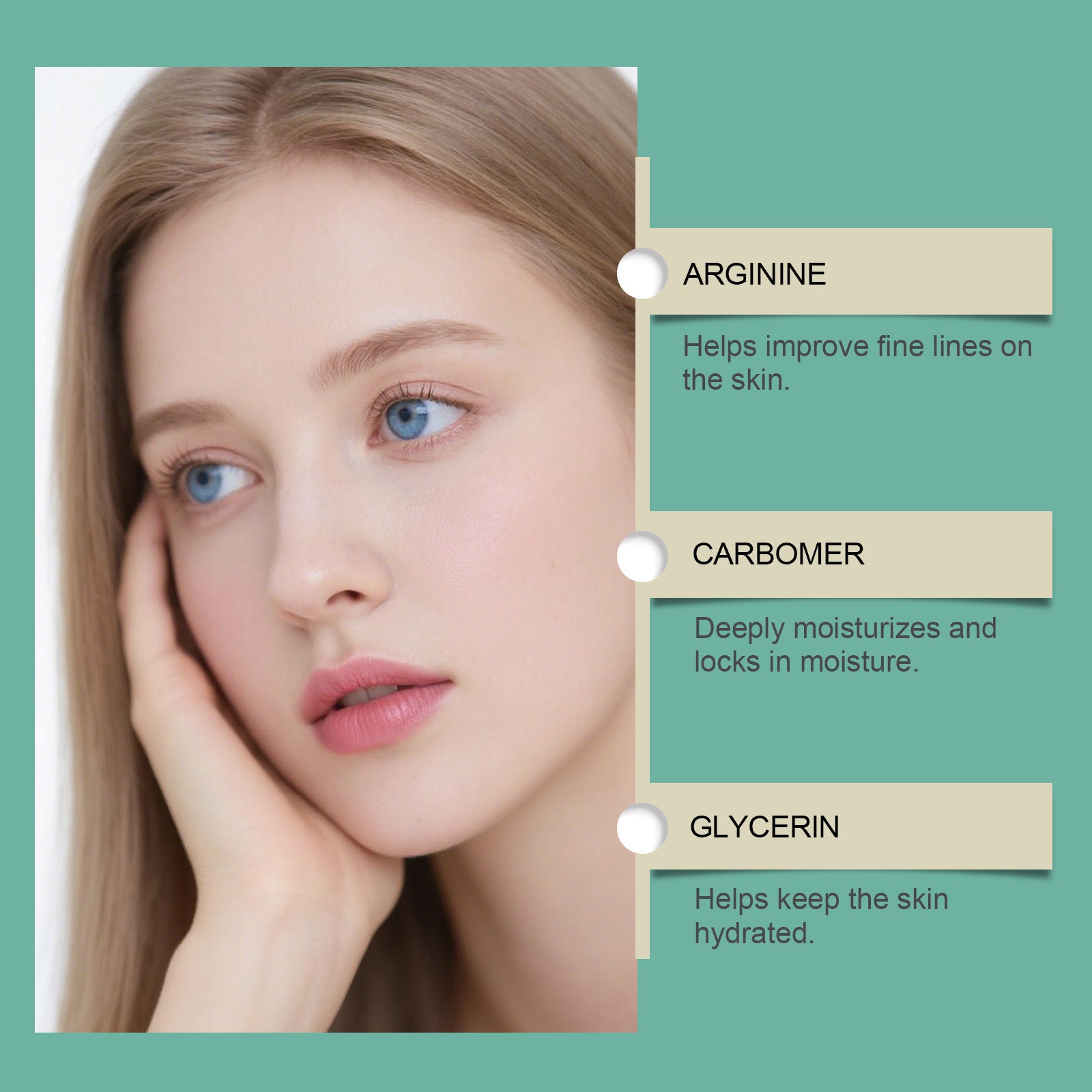 Product information: Ingredients: water, glycerin, 1,2- hexanediol, carbomer, arginine and mung bean extract.